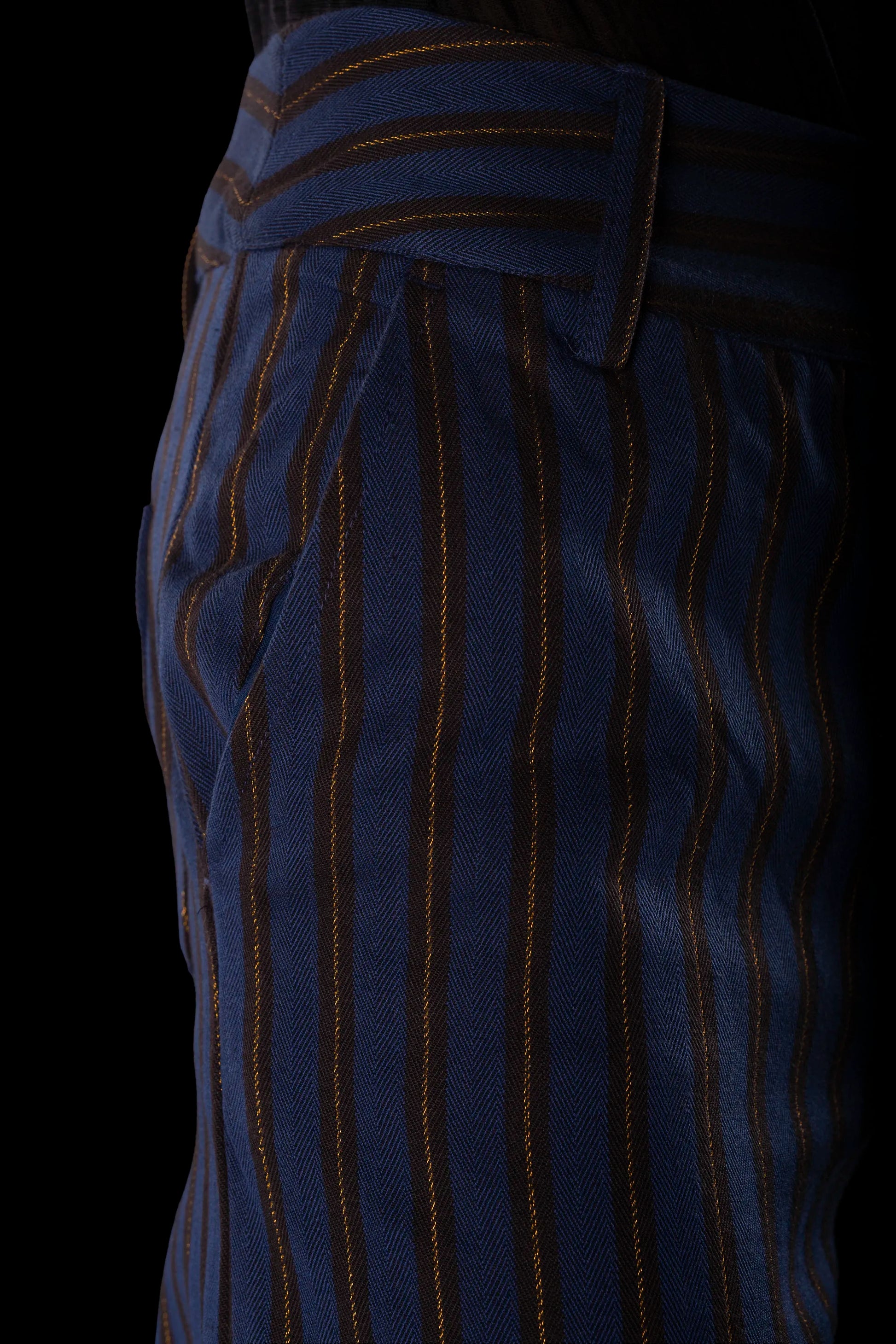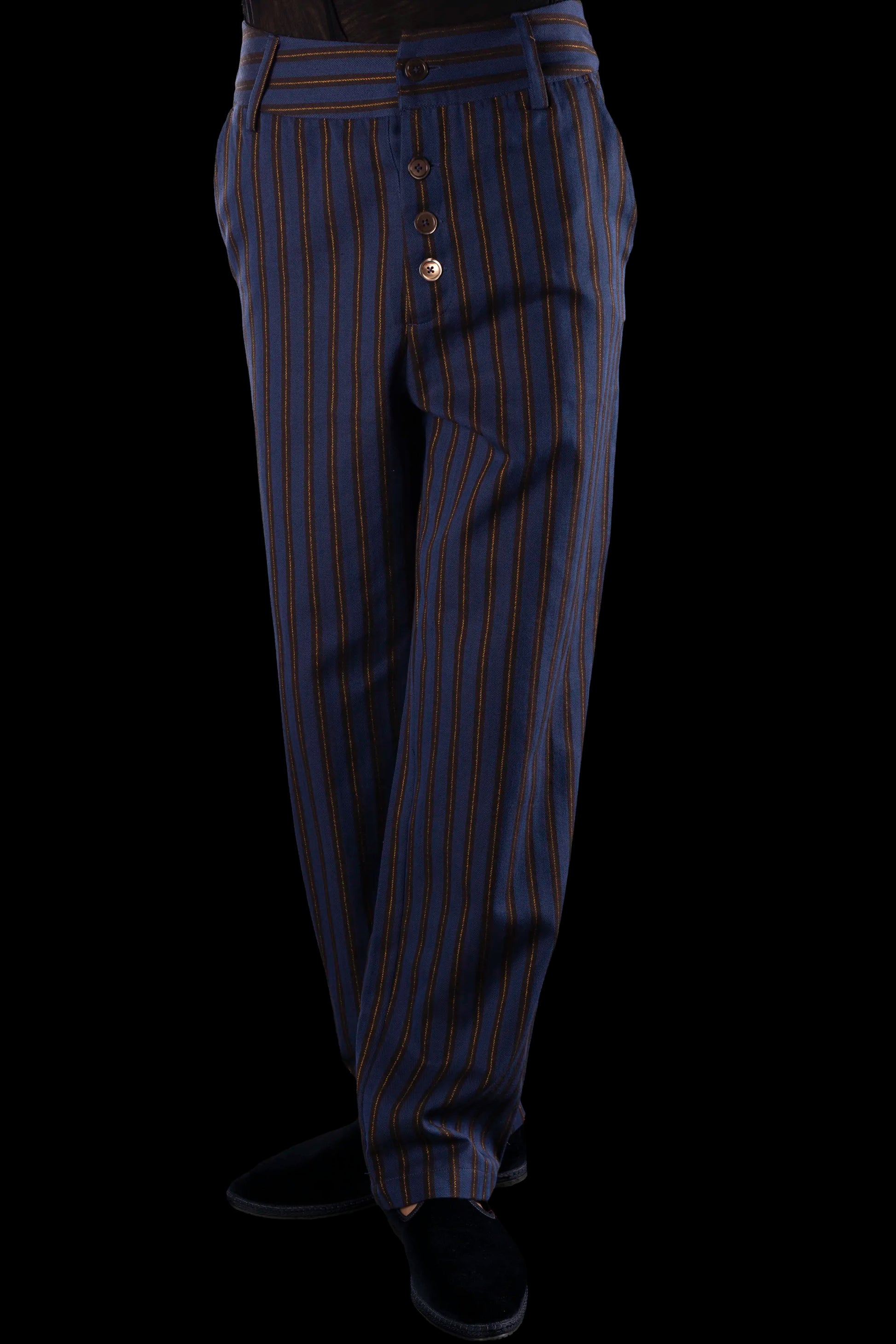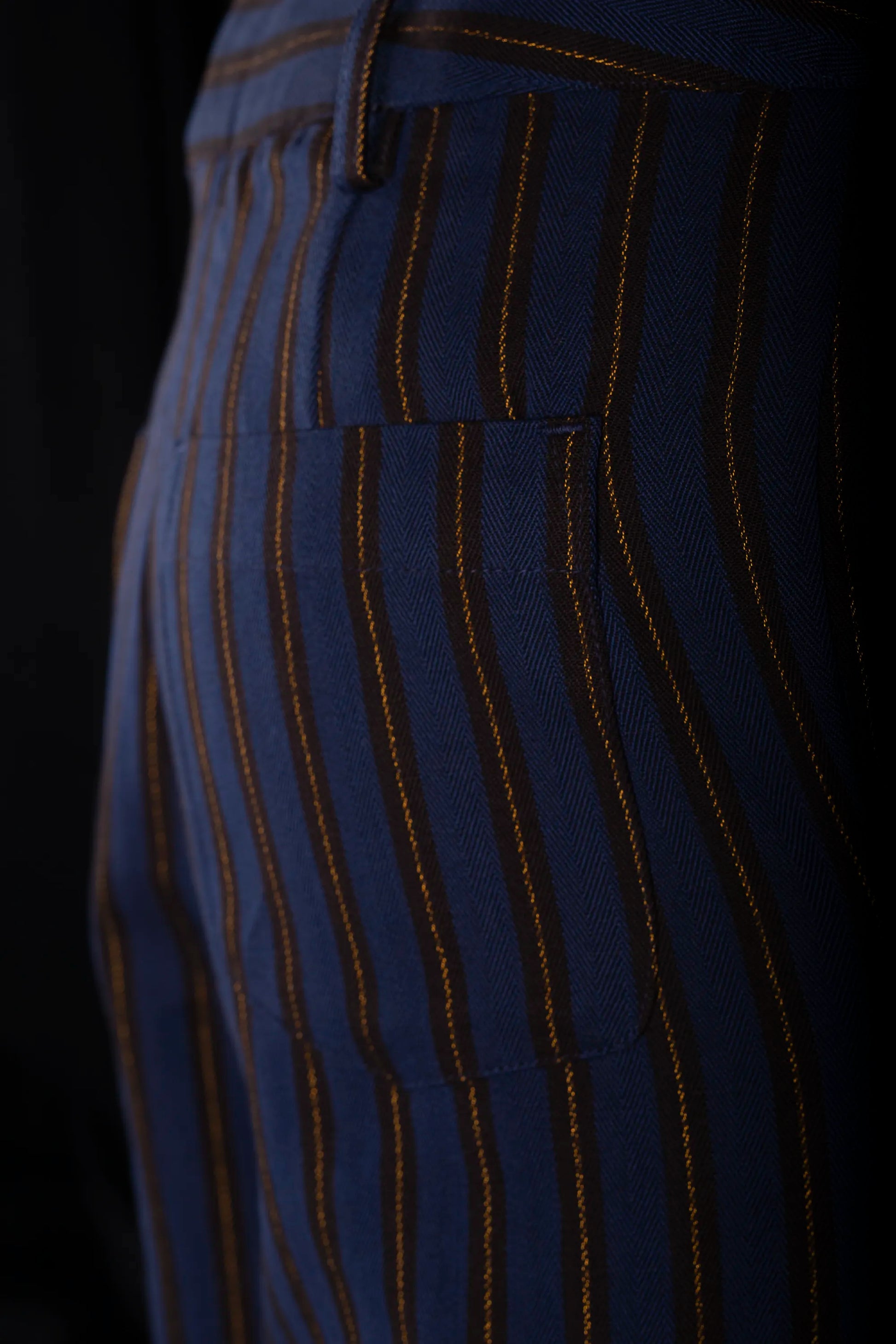 SAILOR-TROUSERS NAVY-Mocha-gold 100% COTTON Herringbone-Thick, Brushed-inside Regimental-S-Stripes
